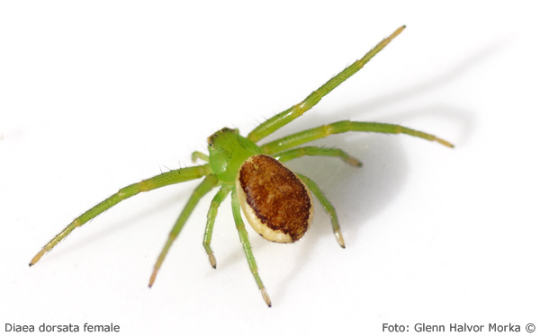 Diaea dorsata hann. Om nettene henger arten ofte i sine tråder